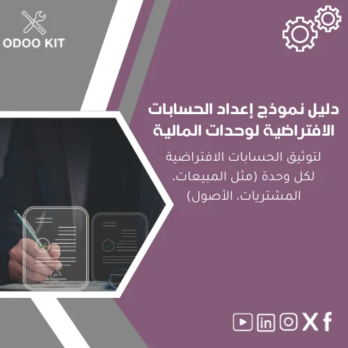 - النوع: دليل ونموذج إعداد الحسابات الافتراضية لوحدات مالية في Odoo.