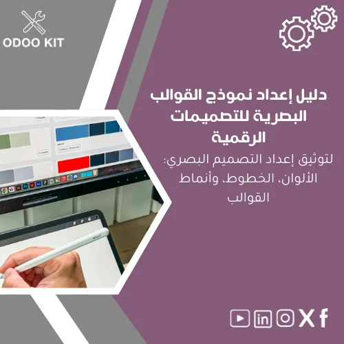 - توثيق موحد للألوان والخطوط: يضمن تطبيق الألوان ونسب استخدامها في القوائم والفواتير وصفحات المنتج داخل Odoo بدون تباين بين القنوات.