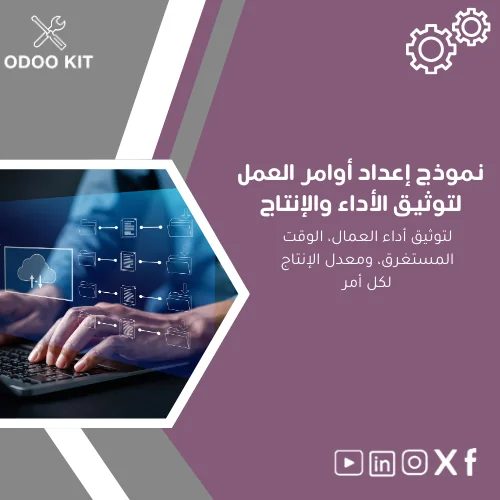 - نوع المنتج: قالب جاهز لنموذج إعداد أوامر العمل داخل Odoo ERP.