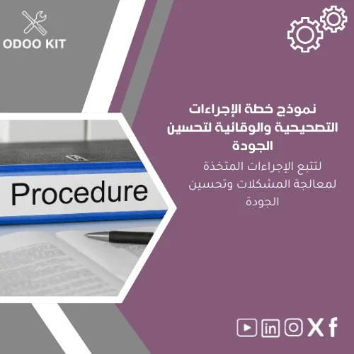 - نوع المنتج: قالب رقمي لنظام Odoo ERP (نموذج خطة الإجراءات التصحيحية والوقائية).