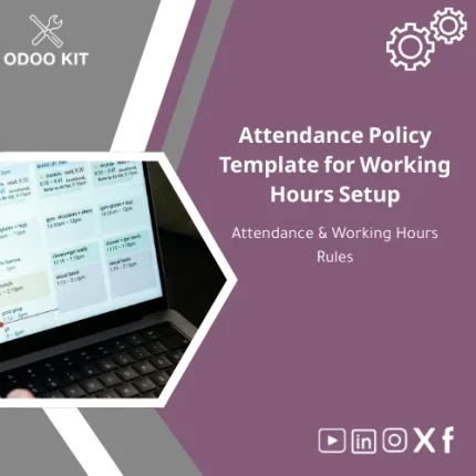 A ready-to-install attendance policy template that defines working hours, lateness rules, shifts, breaks, and automated attendance calculations — designed for small and medium businesses using Odoo ERP who need a fast, low-complexity HR setup.