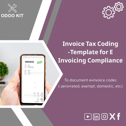 A ready-to-install invoice tax coding template that documents and maps e‑invoice VAT codes (zero-rated, exempt, domestic, reverse-charge, etc.) into Odoo quickly — reducing setup time, preventing VAT errors, and making e‑invoicing compliance repeatable without technical expertise.